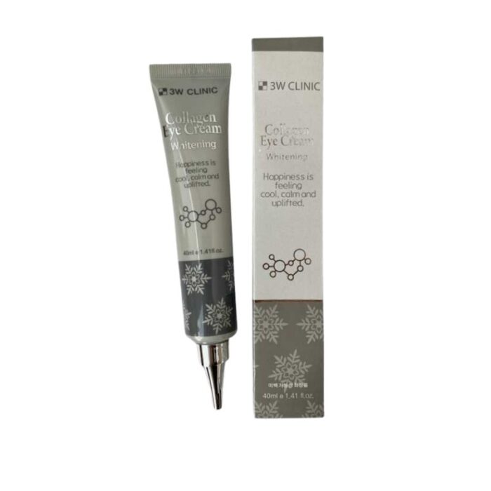 3W Clinic Collagen Eye Cream is a skincare product that is specially formulated to target the delicate skin around the eyes. The cream contains collagen, which is a protein that is naturally present in our skin and helps to maintain its elasticity and firmness. This cream claims to improve the appearance of fine lines, wrinkles, and dark circles under the eyes. The cream comes in a 40ml jar, and it has a smooth and creamy texture that is easy to apply. It is recommended to use this eye cream twice a day, in the morning and evening, after cleansing and toning your face. Gently massage a small amount of cream onto the skin around your eyes, using your ring fingerThe 3W Clinic Collagen Eye Cream contains other beneficial ingredients besides collagen, including adenosine, which is a natural compound that can help to reduce the appearance of wrinkles and fine lines. It also contains hyaluronic acid, which is a powerful humectant that can help to hydrate the skin and improve its elasticity. Overall, the 3W Clinic Collagen Eye Cream is a popular product among those who want to improve the appearance of their eye area. However, it is important to note that individual results may vary, and it is always best to small amount of the product on your skin before using it regularly.