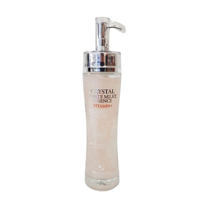 The 3W Clinic Crystal White Milky Essence Vitamin+ is a skincare product that is designed to help brighten and even out skin tone. The essence contains several key active ingredients that work together to promote a more radiant complexion.One of the main ingredients in this essence is Vitamin C, which is known for its skin-brightening properties. Vitamin C is a powerful antioxidant that can help protect the skin from damage caused by free radicals and environmental stressors. It can also help to reduce the appearance of dark spots and hyperpigmentation, resulting in a more even skin tone.The essence also contains niacinamide, a form of Vitamin B3, which has been shown to help brighten the skin and reduce the appearance of fine lines and wrinkles. Niacinamide can also help to improve skin texture and elasticity, resulting in a smoother, more youthful-looking complexion.Other key ingredients in the essence include sodium hyaluronate, a derivative of hyaluronic acid that can help to hydrate the skin and improve its texture and elasticity, and adenosine, a naturally occurring compound that can help to reduce the appearance of fine lines and wrinkles.The essence has a milky texture that absorbs quickly into the skin, leaving it feeling soft, smooth, and hydrated. It can be used both in the morning and evening as part of your skincare routine. Overall, the 3W Clinic Crystal White Milky Essence Vitamin+ is a great option for those looking to brighten and even out their skin tone, while also improving the overall health and appearance of their skin.