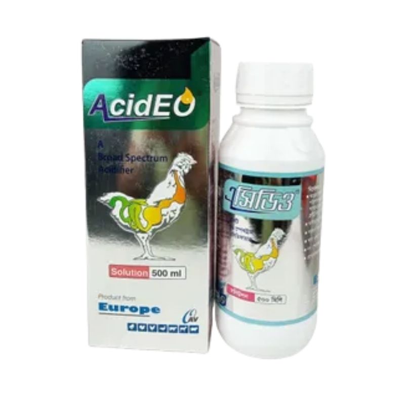 Acideo Solution 500mlย is a veterinary medicinal or nutritional solution, typically used to support animal health. The “500ml” indicates the volume of the product, which is suitable for multiple doses or for use across a group of animals.