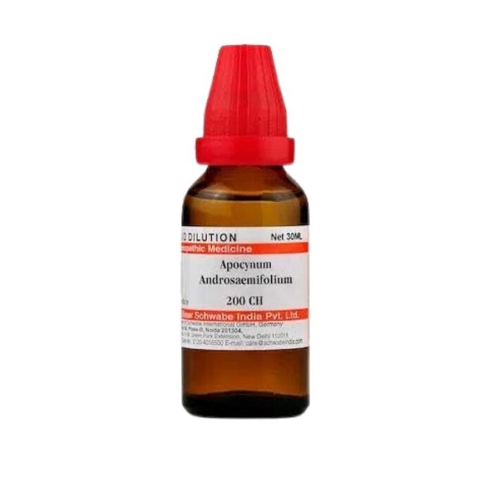 Apocynum 200 (30ml) is a homeopathic remedy derived from the plant Apocynum cannabinum, commonly known as Indian hemp or dogbane. In homeopathy, it is used to treat a variety of conditions, particularly those related to the cardiovascular system and fluid retention. Here’s a general description: