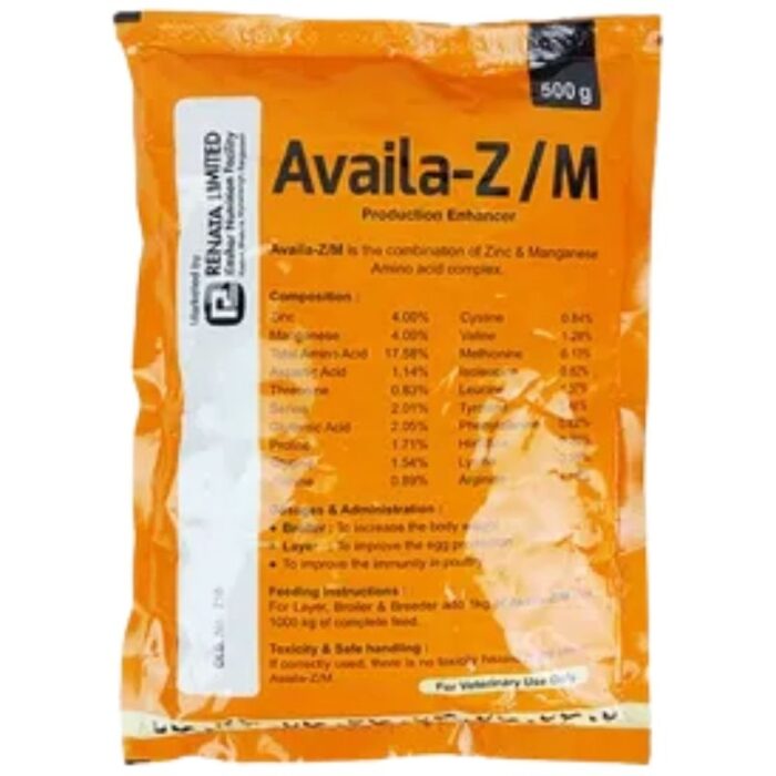 Availa-Z/M 500g is a veterinary nutritional supplement, primarily used as a source of organic zinc and manganese for livestock and animals.