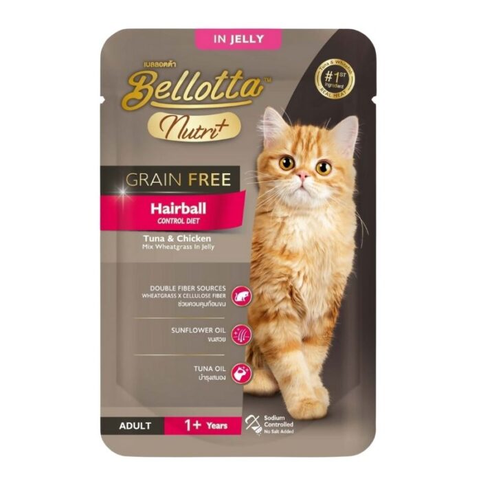 Bellotta Nutri Plus Grain Free Pouch Hairball Control Tuna & Chicken Jelly 70gm