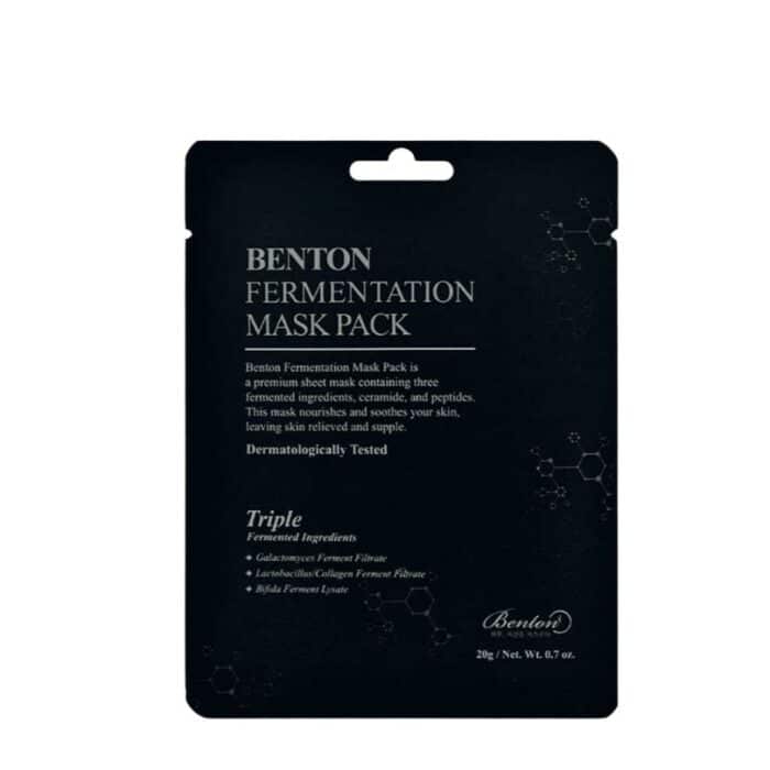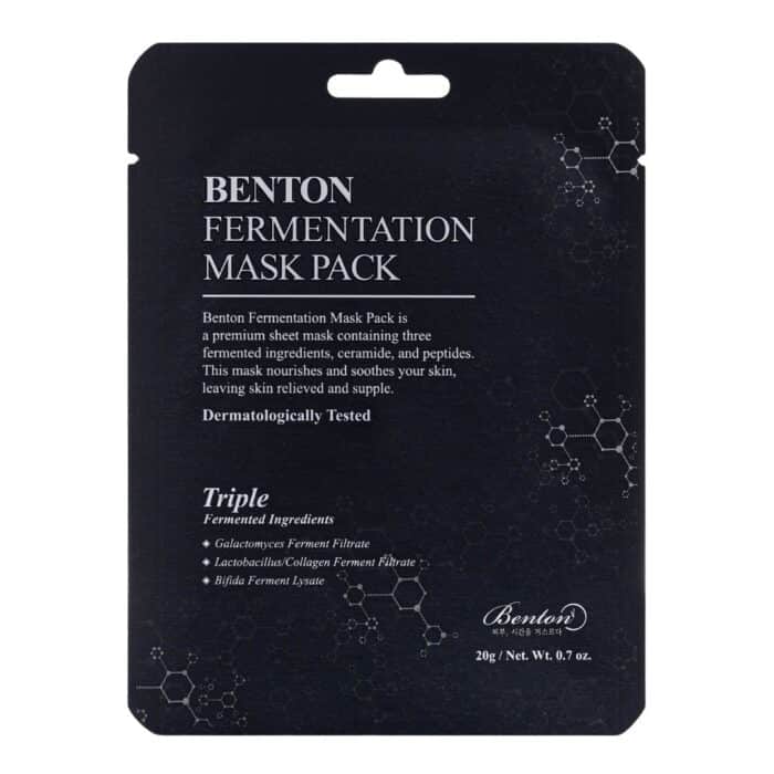 Benton Fermentation Mask Pack is a Korean skincare product that comes in a 20g pack. This mask is designed to help improve the texture and appearance of your skin, and it’s made with fermented ingredients to provide a wide range of benefits. The mask is suitable for all skin types, especially for those who want to reduce the appearance of fine lines and wrinkles.The mask is formulated with galactomyces ferment filtrate, which is known to help hydrate and brighten the skin. It also contains bifida ferment lysate, which can help improve skin elasticity and protect the skin from environmental stressors. The mask also includes ceramide NP, which helps to retain moisture and strengthen the skin barrier.The Benton Fermentation Mask Pack is free of harmful chemicals such as parabens, sulfates, and artificial fragrances. This makes it a great option for those with sensitive skin. The mask has a soft and creamy texture that feels gentle on the skin, and it can be easily washed off after use.