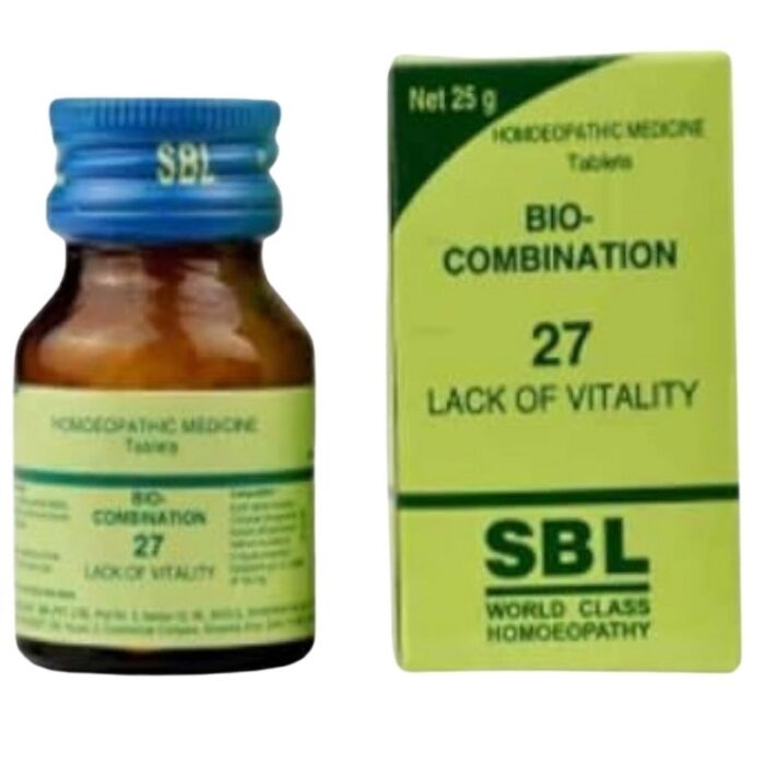 Bio-Combination 27 (Lack of Vitality) 25gm is a homeopathic remedy specifically designed to address symptoms of low energy, fatigue, and overall lack of vitality. This remedy combines multiple homeopathic ingredients that work together to support physical and mental stamina, enhance overall vitality, and help restore energy levels. It is ideal for individuals experiencing general weakness, exhaustion, or a feeling of being constantly drained, helping to rejuvenate and energize the body.