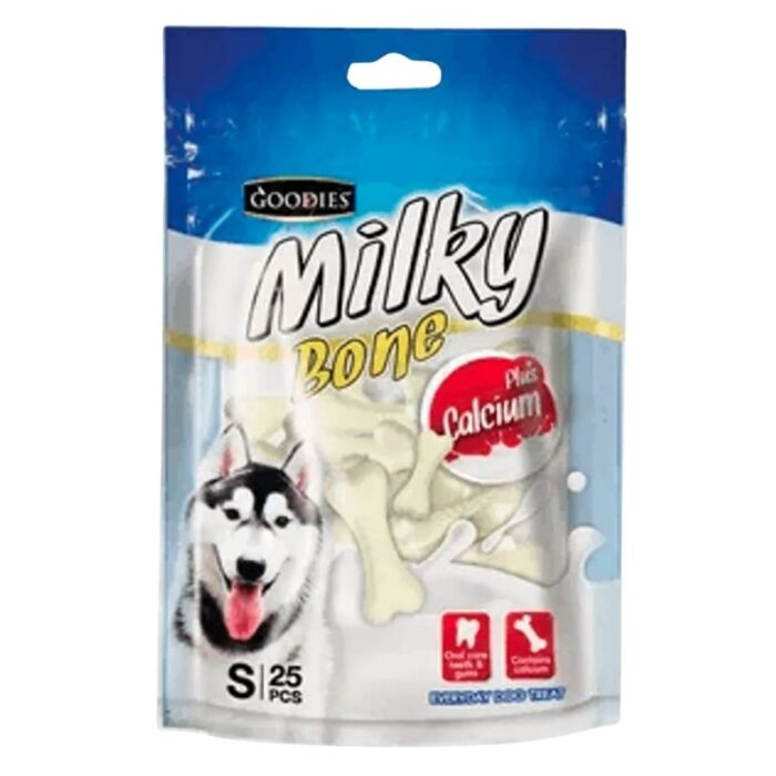 Goodies Dog Food Milky Bone Calcium Plus L is a pack of calcium bones with milk flavour.