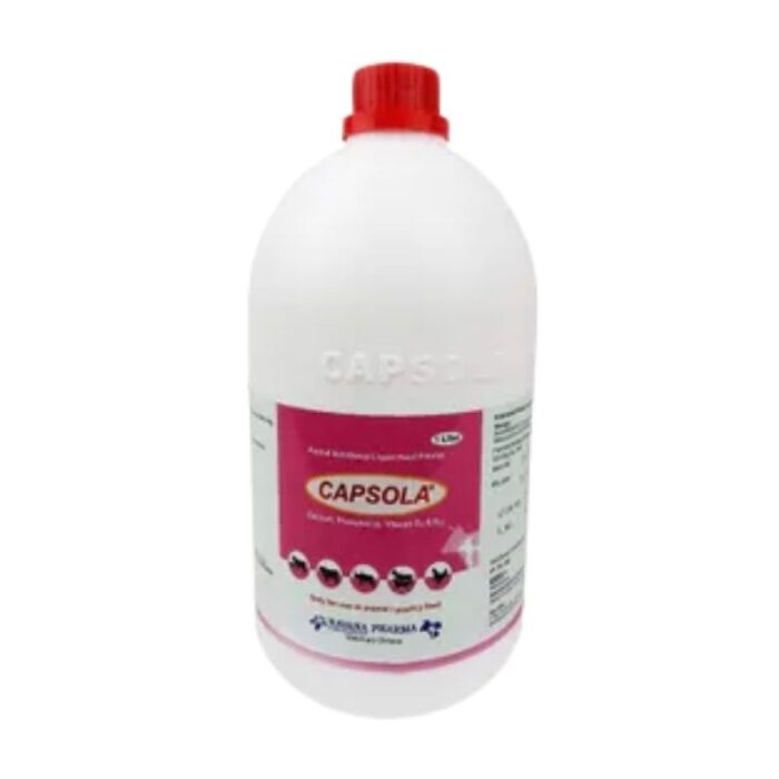 Capsola 1 Liter is an oral supplement designed to support the nutritional and overall health of animals. Rich in essential vitamins, minerals, and bioactive compounds, it helps boost immunity, improve stamina, and promote healthy growth. Its easy-to-administer liquid form makes it suitable for livestock, poultry, or pets, ensuring rapid absorption and effective results. Capsola 1 Liter is an ideal supplement for maintaining optimal health and enhancing productivity in animals.