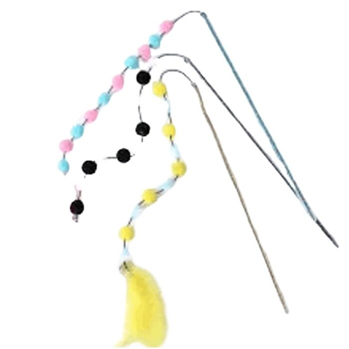 Cat Toy Stick Feather Ball – (Available Colors) Piece