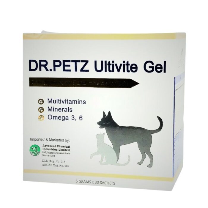 DR.PETZ ULTIVITE GEL FOR DOG contains vitamins, chelated minerals (high absorption), essential Omega-3 from Fish oil and Krill oil with delicious taste and flavor which provides energy and supplies essential nutrients that are readily available for dogs.