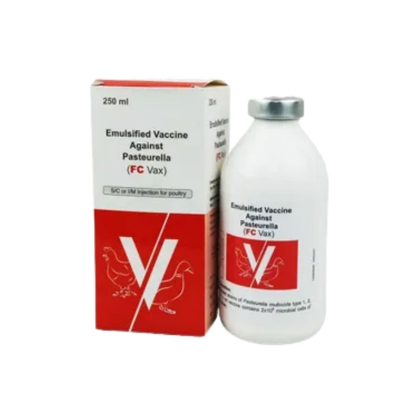 FC Vax 250mlย is a veterinary vaccine designed to provide protection against specific infectious diseases in livestock or poultry, depending on its formulation. This 250ml preparation is suitable for vaccination programs aimed at enhancing immunity and preventing outbreaks.