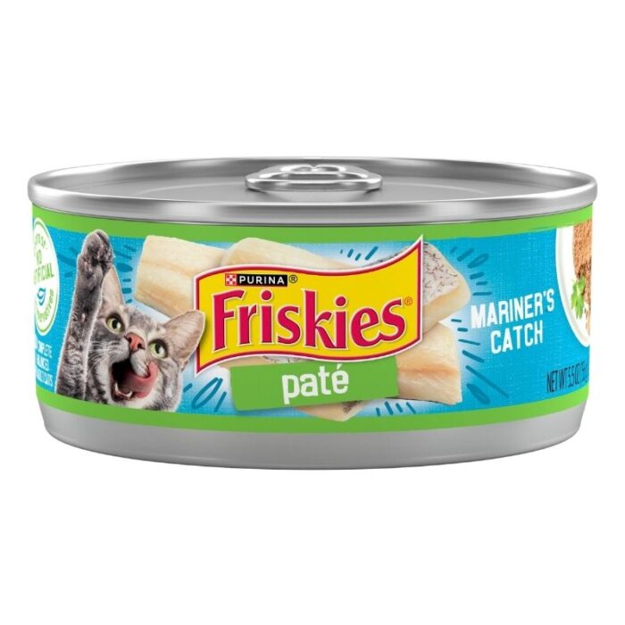 Indulge your feline friend with the irresistible flavors and tantalizing aroma of Friskies Pate Mariner’s Catch Wet Can Cat Food.