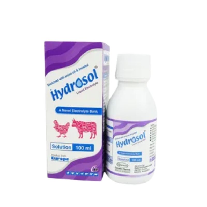 Hydrosol 100ml is a veterinary supplement or medicinal product formulated to support hydration, electrolyte balance, and overall fluid management in animals. It is typically used to treat dehydration caused by illness, diarrhoea, or excessive physical activity, helping animals recover their normal fluid and electrolyte levels.