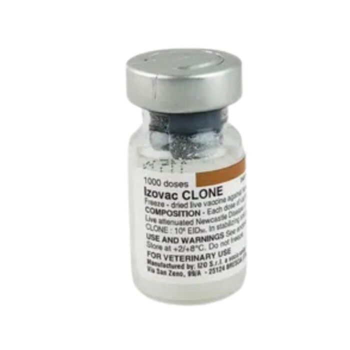 Izovac Clone is a veterinary vaccine designed to protect poultry against Infectious Bursal Disease (IBD), commonly known as Gumboro disease, caused by the Infectious Bursal Disease Virus (IBDV). This vaccine is formulated to induce strong immunity in young birds, preventing disease onset and supporting healthy flock development.