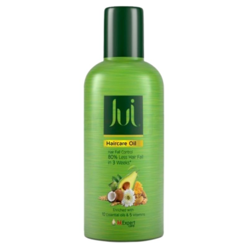 Jui Hair Care is light & non-sticky, a composition of 10 essential oils and 5 necessary vitamins which ensures maximum nourishment of the hair. Jui Hair Care is highly enriched in Vitamin E (1000 times more vitamin E compare to ordinary hair oils) & A, which ensures hairโs protection from the harmful UV radiation of the sun. Vitamin B increases hair growth cells assisting in new hairs to grow faster. Vitamin C reduces the presence of iron on the scalp and increases strength from the root. Vitamin F controls hair damage, cancels dryness and amplifies natural shine. Main Ingredients: Mineral Oil, Wheat Germ Oil, Dragobotania, 10 essential herbal extracts, 5 essential vitamins, perfume, oil soluble green color.