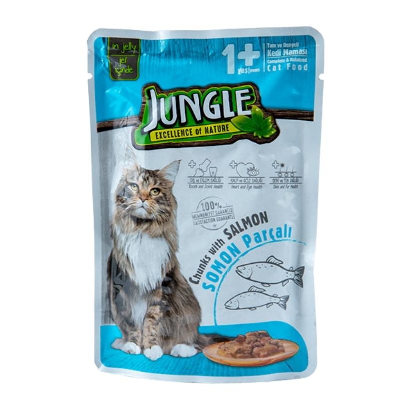 Jungle Adult Cat Food Chunks With Salmon – 100g Pouch