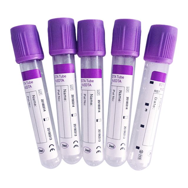 EDTA tube is widely used in clinical haematology, cross matching, blood grouping as well as various kinds of blood cell test instruments. It offers comprehensive protection for blood cells, especially for protecting the blood platelet, so that it can effectively stop the gathering of blood platelet and makes the form and volume of blood cells uninfluenced within a long time. Excellent outfits with super-minute technique can spray additive uniformly on the inner surface of the tube, thus blood specimens can completely mix with the additive. EDTA anticoagulant plasma is used for biological assay of pathogenic microorganisms, parasites, and bacterial molecules, etc.