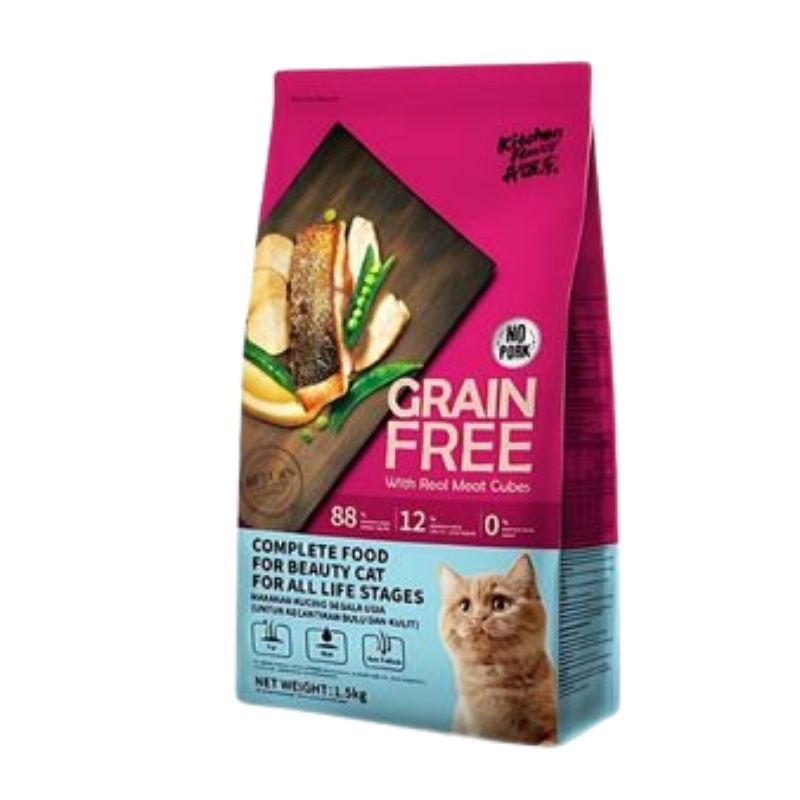 Kitchen Flavor Grain-Free Beauty Complete Cat Food for All Life Stages (8kg) is a premium, nutritious cat food designed to support the health and well-being of cats at every stage of life, from kittens to seniors. This grain-free formula is ideal for cats with food sensitivities or those that require a diet free from grains, gluten, and other common allergens.
