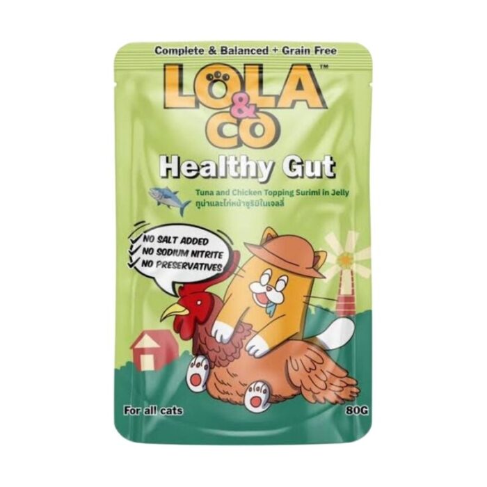 Lola & Co HEALTHY GUT Pouch Tuna &Chicken Topping Surimi in Jelly for All Cats 80gm