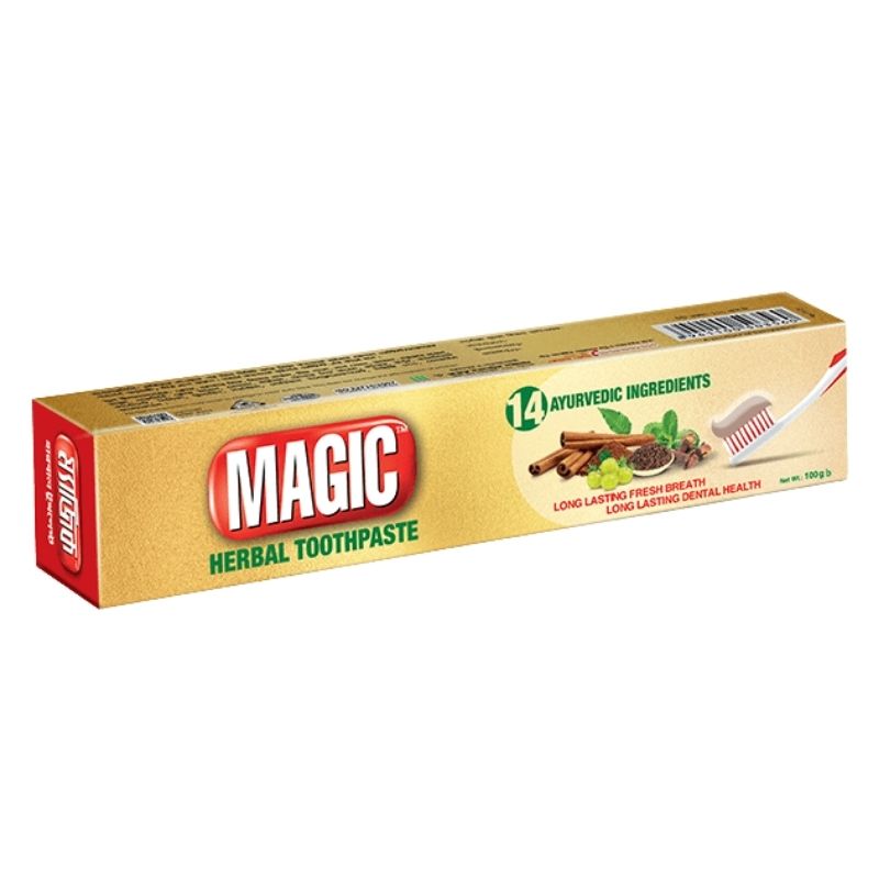 Magic Herbal Toothpaste contains 14 kinds of Ayurvedic extracts, like clove, Mint Tomar Seed, Babul, Amla etc. Its Special ingredients gives long lasting fresh breath & long lasting Dental Health.
