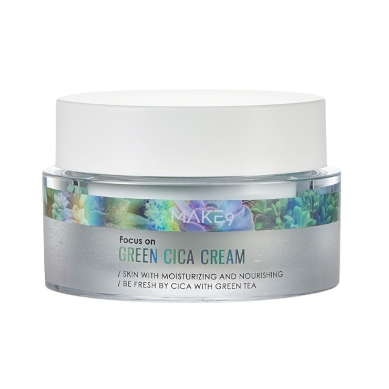 - MAKE9 GREEN CICA CREAย your skincare essential for calming, nourishing, and restoring your skinโs natural balance. Centella Asiatica extract is the star ingredient of the Green Cica Cream. reduce redness, and promote skin regeneration, making it ideal for sensitive, acne-prone, or damaged skin.