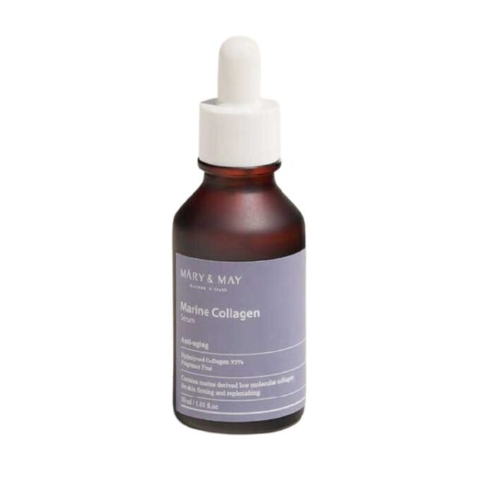 The MARY & MAY Marine Collagen Serum (30ml) is a nourishing serum formulated with marine collagen to boost skin elasticity and firmness. It helps hydrate the skin deeply, reduce the appearance of fine lines, and promote a plump, youthful complexion. Perfect for restoring skin support and enhancing overall glow.