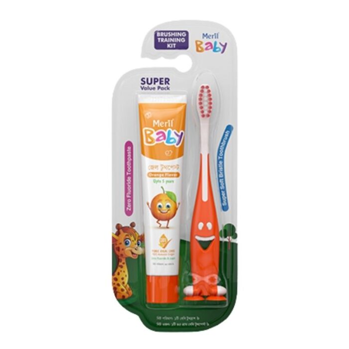 Meril Baby Brushing Training Kit is a unique combo pack consisting of Meril Baby Gel Toothpaste and Meril Baby Toothbrush, specially designed to encourage regular oral care in babies. This kit ensures gentle care for your baby’s soft and delicate teeth and gums. It is important to use toothpaste and toothbrush specifically formulated for babies, as adult products may be too harsh for their oral health.