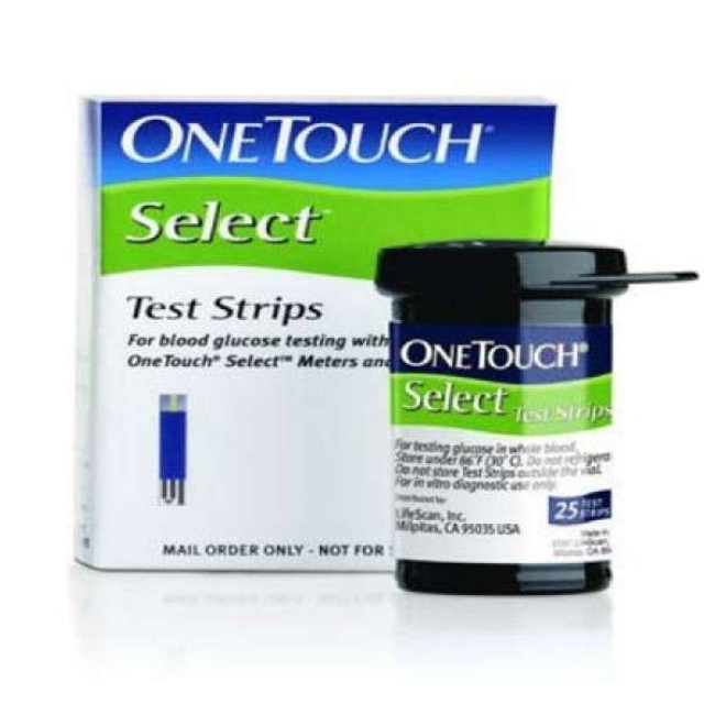 - 1 x Pack of 25 One Touch Select Blood Glucose Strips