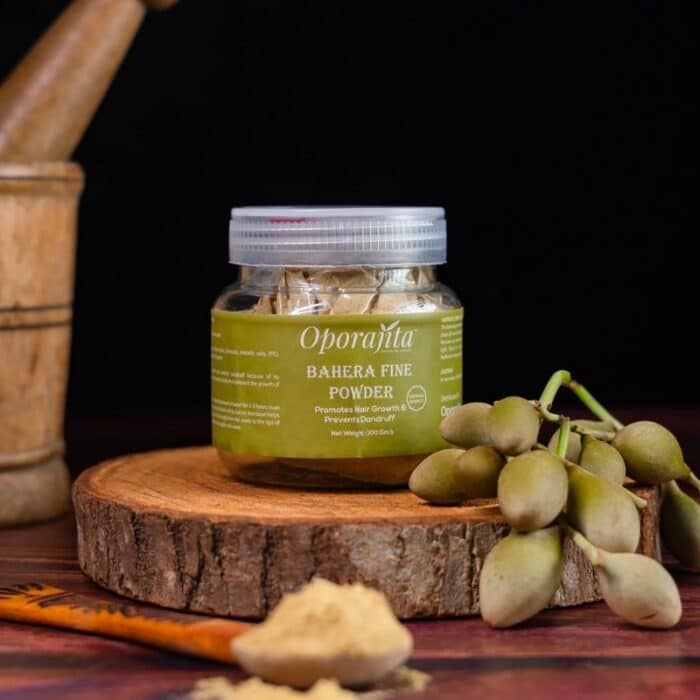 porajita Bahera Fine Powder 100g is a healthful herbal blend that combines the benefits of Bahera (Terminalia bellirica) and Oporajita (Clitoria ternatea). Bahera is known for its digestive health, detoxifying, and anti-inflammatory properties, while Oporajita adds natural color and calming benefits. This fine powder is commonly used in herbal medicines, face packs, or dietary remedies to promote overall wellness, skin health, and digestion.