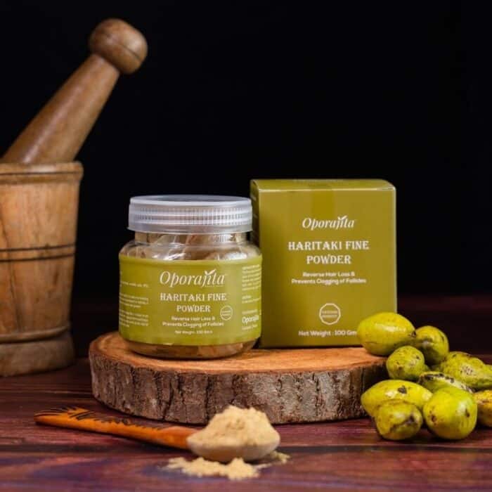 Oporajita Haritaki Fine Powder 100g is a premium blend of finely ground Haritaki (Terminalia chebula) and Oporajita (Clitoria ternatea). This combination is prized in traditional medicine for its health-boosting properties. Haritaki is known for its digestive, detoxifying, and digestive benefits, while Oporajita adds natural coloring, medicinal, and calming qualities. The fine powder is easy to incorporate into herbal remedies, face packs, or health drinks.