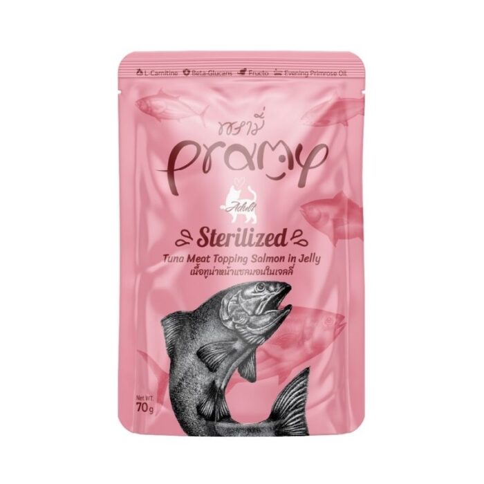 Pramy STERILIZED Pouch Tuna Meat Topping Salmon in Jelly for Adult 70gm