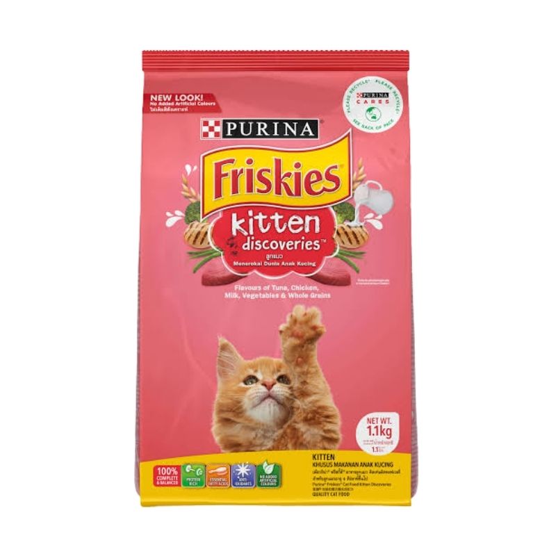 Start a new world adventure for your kitten with every FRISKIESยฎ meal of Kitten Discoveries Kitten Dry Food. This small-sized piece is packed with a variety of interesting and delicious flavors such as tuna, chicken, milk, vegetables and whole grains, it will surely satisfy the desire for your kittenโs adventure. FRISKIESยฎ Kitten Discoveries provides your cat with complete and balanced nutrition, contains protein, essential fatty acids with Omega 3 and 6, antioxidants, taurine, calcium and vitamin D to meet your kittenโs nutritional needs.