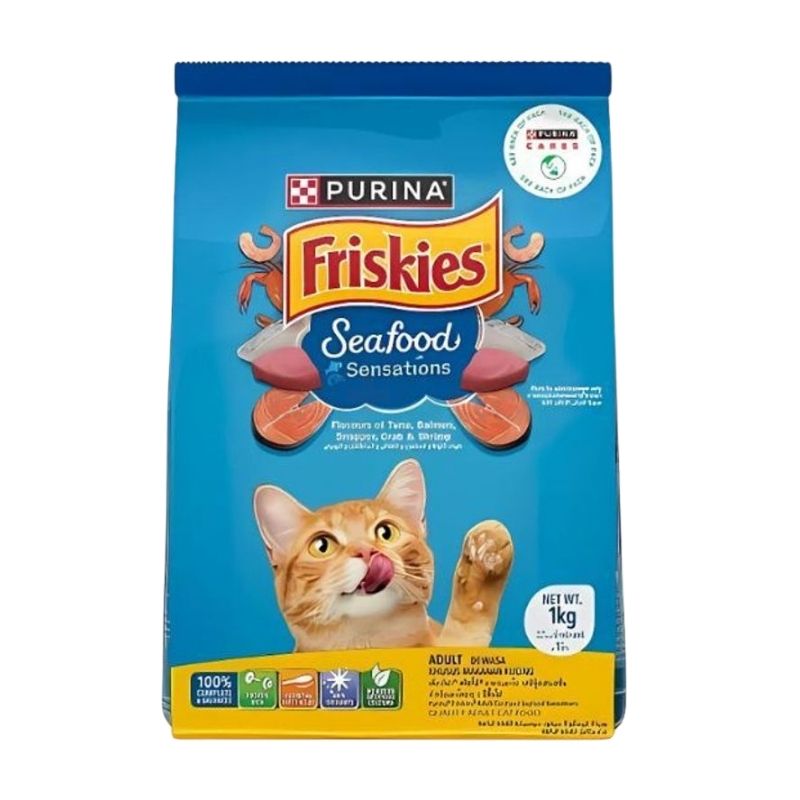FRISKIES® Adult Cat Dry Food Seafood Sensations gives you a taste of the luxurious sensation of being a gem in the ocean. Comes with a combination of tuna fish, salmon, white fish, crab & shrimp that your cat will love! FRISKIES® Seafood Sensations provides your cat with complete and balanced nutrition, containing protein, essential fatty acids with Omega 3 and 6, antioxidants, taurina and calcium to meet your cat’s daily nutritional needs.
