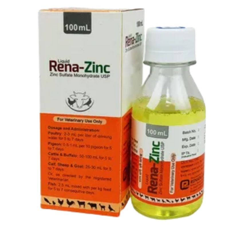 Rena-Zinc 100ml (Vet) is a veterinary supplement formulated to support skin health, wound healing, and overall vitality in animals. It is typically enriched with zinc, an essential mineral known for its vital role in immune function, skin integrity, and tissue repair.