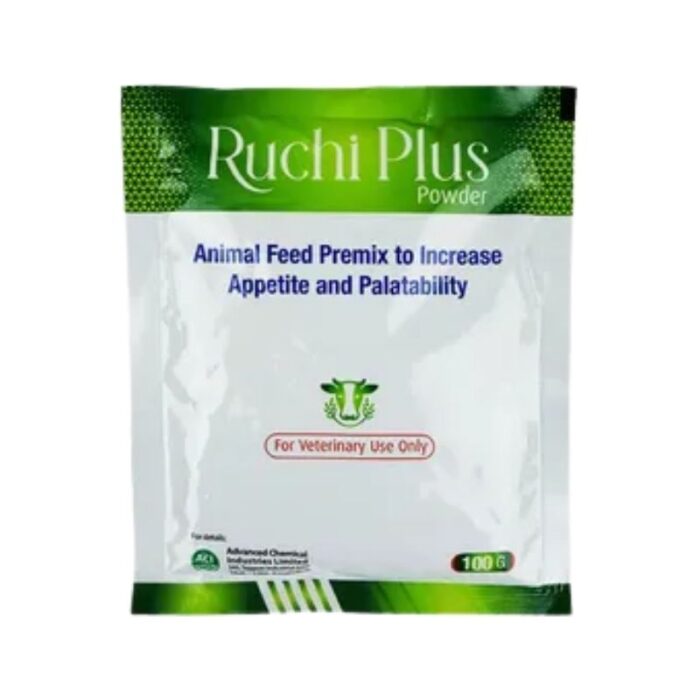 - Recommended Dosage: The typical dosage for Ruchi-Max Powder is 1-2 grams per 10 kg body weight per day, but the exact dosage may vary based on the animal’s size and condition.