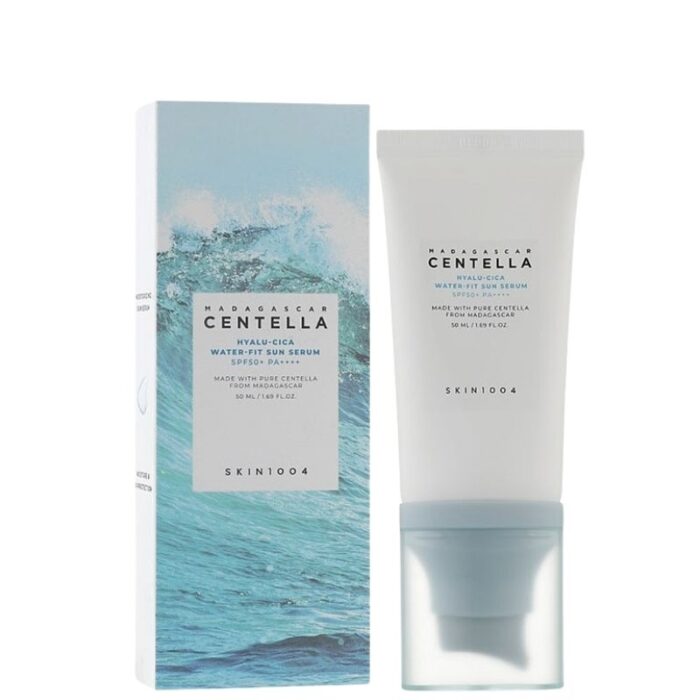 Dive into the realm of ultimate sun protection and hydration with SKIN1004’s Madagascar Centella Hyalu-Cica Water-Fit Sun Serum SPF50+ PA++++.