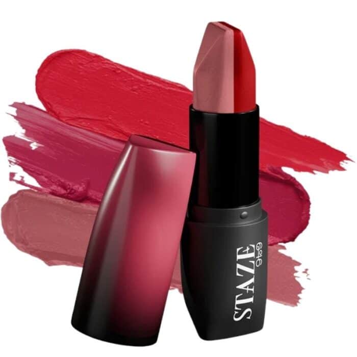 The Staze 9to9 Love Tri-Angle 3 In 1 Lipstick (02 Scarlet Whisper) offers three shades in a compact, innovative design. 02 Scarlet Whisper likely features bold, vibrant hues such as classic red, deep berry, or warm scarlet tones, perfect for making a statement.