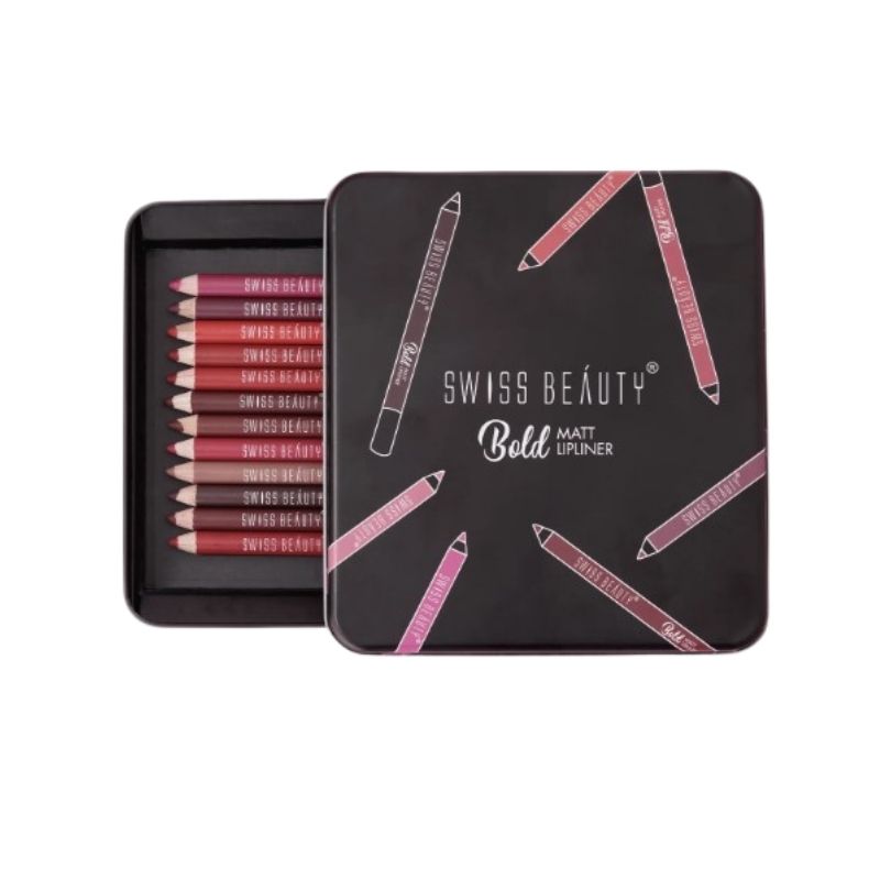 The Swiss Beauty Bold Matte Lipliner 12 Pcs Set offers an assortment of vibrant, richly pigmented matte lip liners, perfect for creating diverse and bold lip looks. Each pencil features a smooth, creamy texture for easy, precise application and long-lasting color. Ideal for experimenting with different shades or building a versatile lipstick collection.