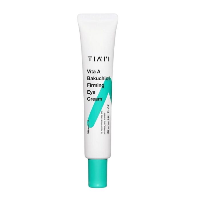 Tiam Vita A Bakuchiol Firming Eye Cream Harnessing the anti-aging benefits of Vitamin A and antioxidant-rich bakuchiol, this eye cream helps reduce wrinkles and fine lines for a rejuvenated look. It also contains peptide complex to smooth and firm up skin. The creamy yet lightweight texture absorbs readily into skin without leaving a sticky after-feel.