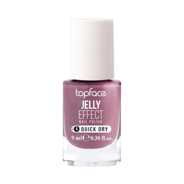 The Topface Jelly Effect Nail Polish – 022 features a soft, pastel hue with a translucent, jelly-like finish. It creates a delicate, fresh look on nails, perfect for a subtle pop of color with a glossy gloss.