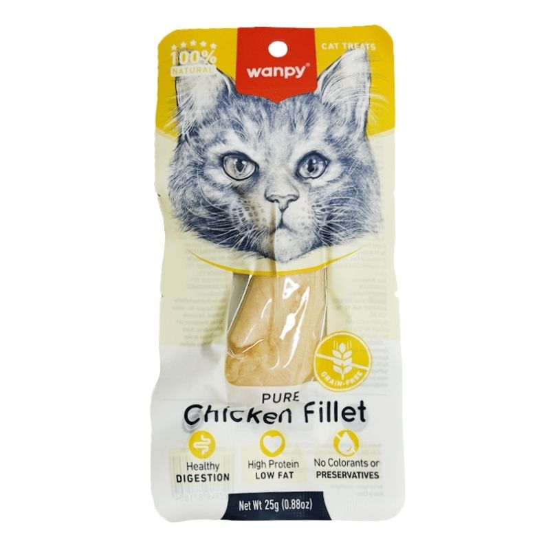 Wanpy Cat Treat Pure Chicken Fillet (25g piece) is a premium, all-natural treat made from high-quality chicken fillet, perfect for pampering your cat. These treats are made with 100% pure chicken, offering a healthy and delicious snack your feline friend will love. The tender fillet is easy to chew and packed with protein, making it an ideal choice for a nutritious reward or special treat.