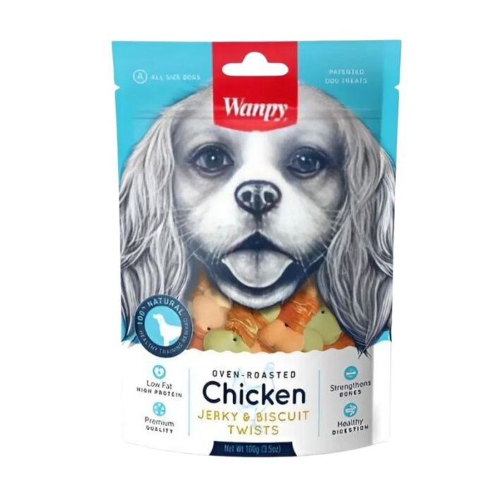 Wanpy Dog Treat Oven Roasted chicken Jerky & Biscuit Twists 100g