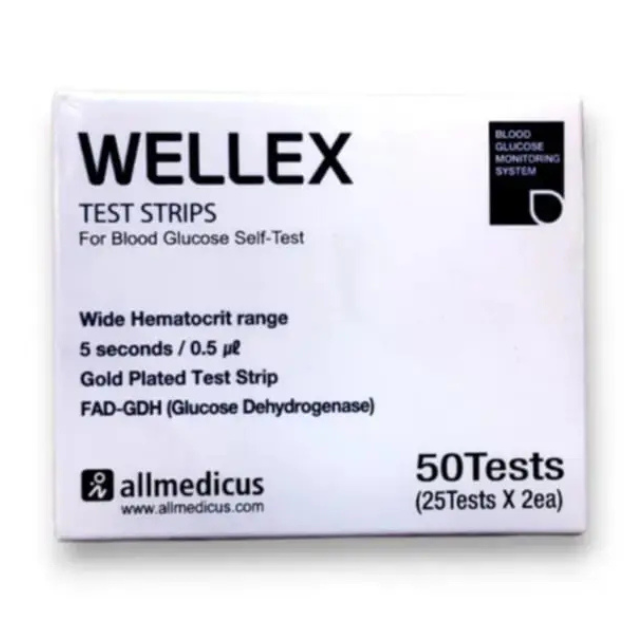 - Wellex Glucose Meter Test Strip is designed for accurate and fast blood glucose testing at home or clinics. Easy to use with Wellex Glucose Meter, it provides reliable results within seconds. Suitable for diabetic patients who want regular monitoring.